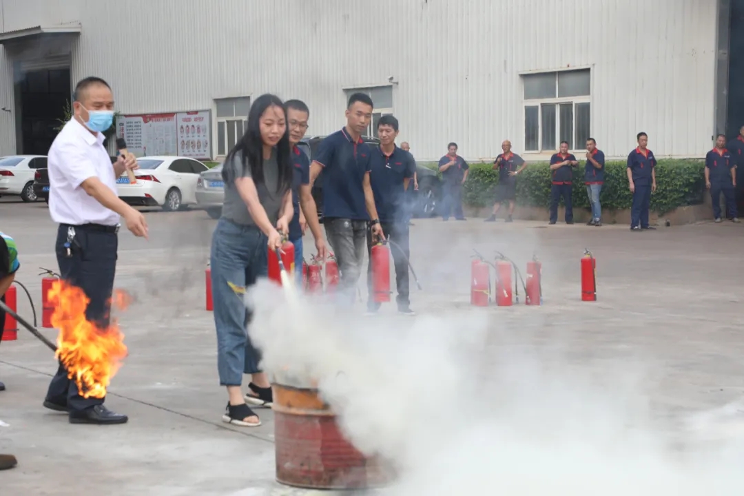 進(jìn)入實(shí)操環(huán)節(jié)后,安保人員逐一演練滅火器、消防栓等消防器材的使用方法,并對(duì)工廠各個(gè)地方需要設(shè)立的滅火器、消防栓、應(yīng)急燈、以及應(yīng)急指示牌的數(shù)量和位置做了詳細(xì)解答。通過理論和實(shí)戰(zhàn)結(jié)合,加強(qiáng)員工們的消防意識(shí),提高抗擊突發(fā)事件的應(yīng)變能力。