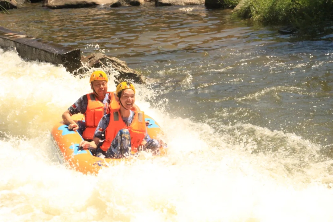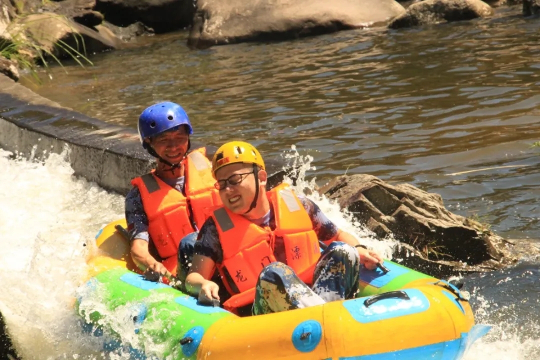 經(jīng)歷風(fēng)雨更能體會(huì)甘甜。在一番“歷險(xiǎn)”后,巨邦人回歸大自然——聽自高山而泄匯聚而成的溪水在蜿蜒的漂流道內(nèi)一路歡唱;看綠意盎然,溪水清澈。兩人一組駕馭皮艇自由小舟,感受跌宕起伏的自然河道,馳騁于優(yōu)美山澗,換得一身自然與舒暢,在不經(jīng)意間相視而笑,為這一場(chǎng)“團(tuán)隊(duì)作戰(zhàn)”的苦盡甘來(lái),為“巨邦成長(zhǎng)記”的默契合作。