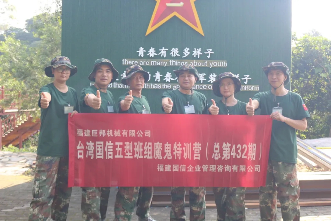 強(qiáng)企必先強(qiáng)人。為了提升管理者與企業(yè)骨干管理能力,給予員工更多學(xué)習(xí)與成長的機(jī)會(huì),打造斗志昂揚(yáng)、高效合作的精英團(tuán)隊(duì),7月30日-8月1日,巨邦機(jī)械組織公司管理干部及儲(chǔ)備優(yōu)秀員工參加了為期三天兩夜的“臺灣國信企管第432期五型班組魔鬼特訓(xùn)營”拓展訓(xùn)練。