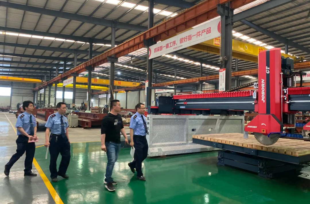 4月25日,南安市水頭鎮(zhèn)市場監(jiān)督管理所所長黃彬輝一行蒞臨巨邦機(jī)械調(diào)研指導(dǎo)。巨邦機(jī)械總經(jīng)理蔡建華、技術(shù)部副總經(jīng)理高河森熱情接待。