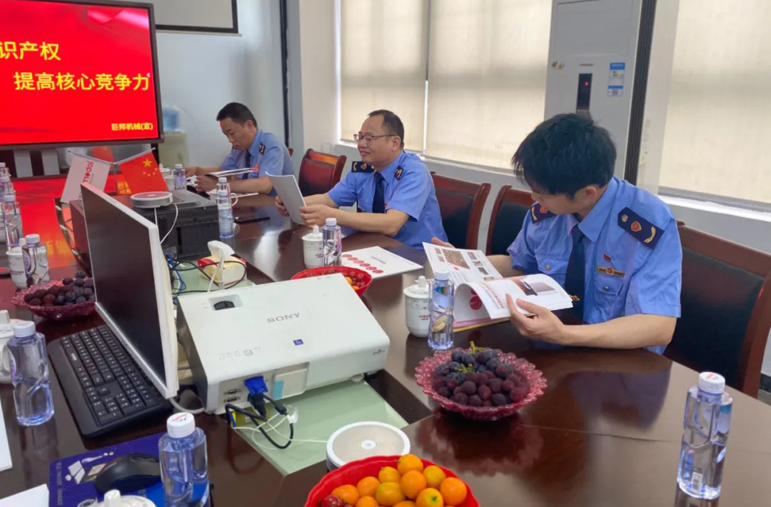 隨后,雙方就“依靠自主知識產(chǎn)權(quán),提高核心競爭力”主題開展了座談會(huì),調(diào)研組聽取了巨邦機(jī)械知識產(chǎn)權(quán)的工作匯報(bào),對巨邦的知識產(chǎn)權(quán)工作給予了肯定,并圍繞商標(biāo),專利,特種設(shè)備的檢測、安全性、標(biāo)識等重點(diǎn)問題和與會(huì)人員展開深入交流。